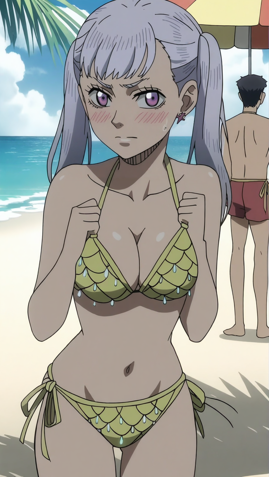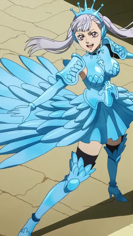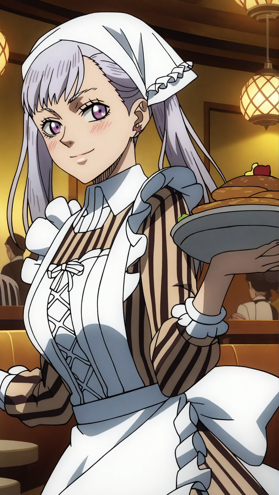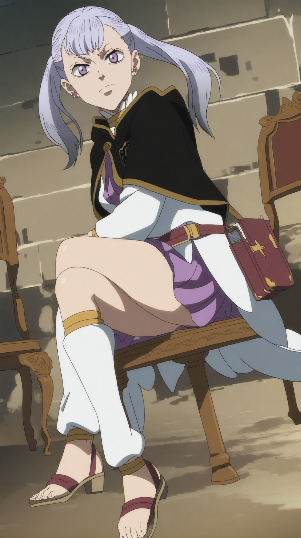 noelle silva, silver hair, purple eyes, bangs, long hair, twintails,