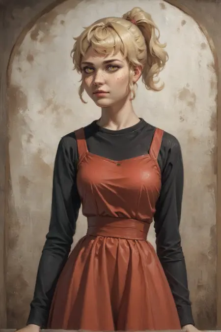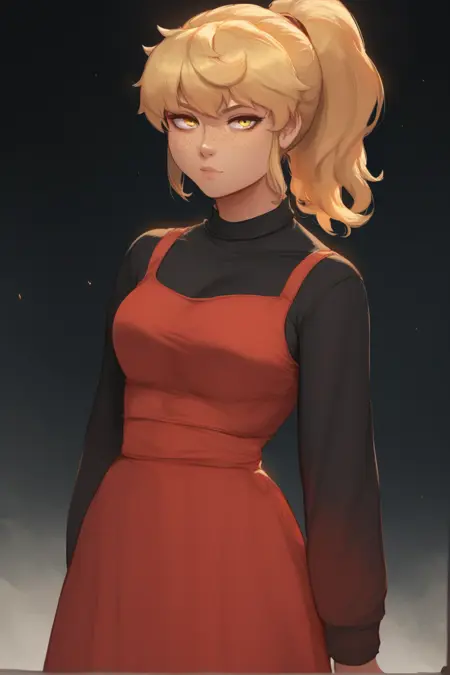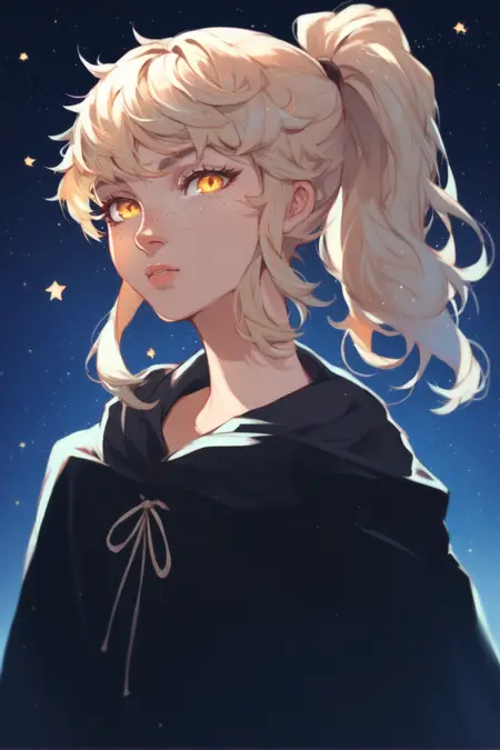 より良い外観にするには、「そばかす、黄色い目、ポニーテール」を追加してください。