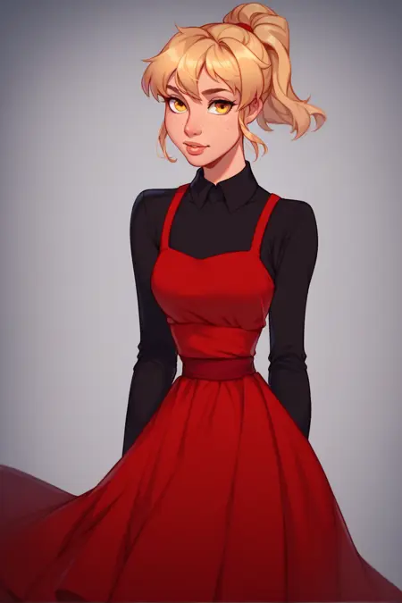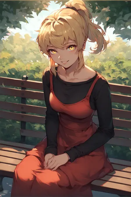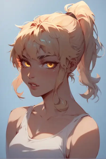 より良い外観にするには、「金髪、黄色い目、ポニーテール、短髪」を追加してください。