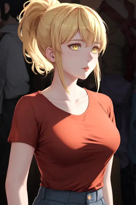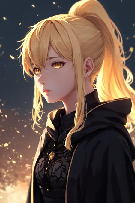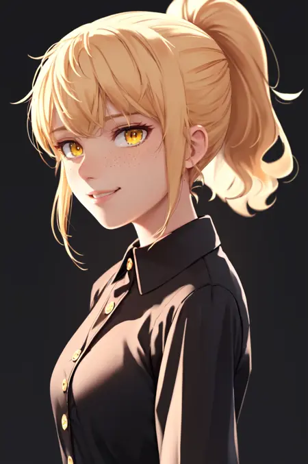 より良い外観にするには、「金髪、黄色い目、ポニーテール、短髪」を追加してください。