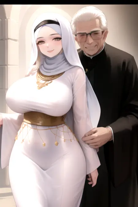 FathaMilf, a man and a woman, hetero, standing, smile, cowboy shot