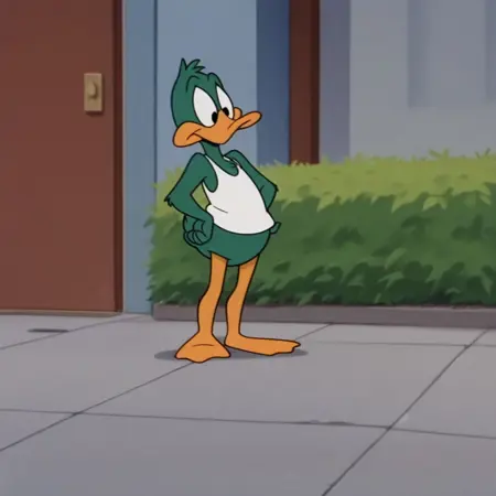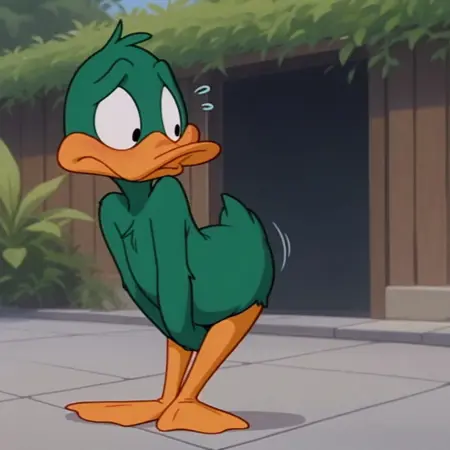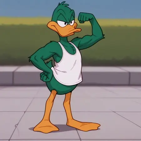 pluckyttail, semi-anthro, male, duck, green feathers, black eyes,