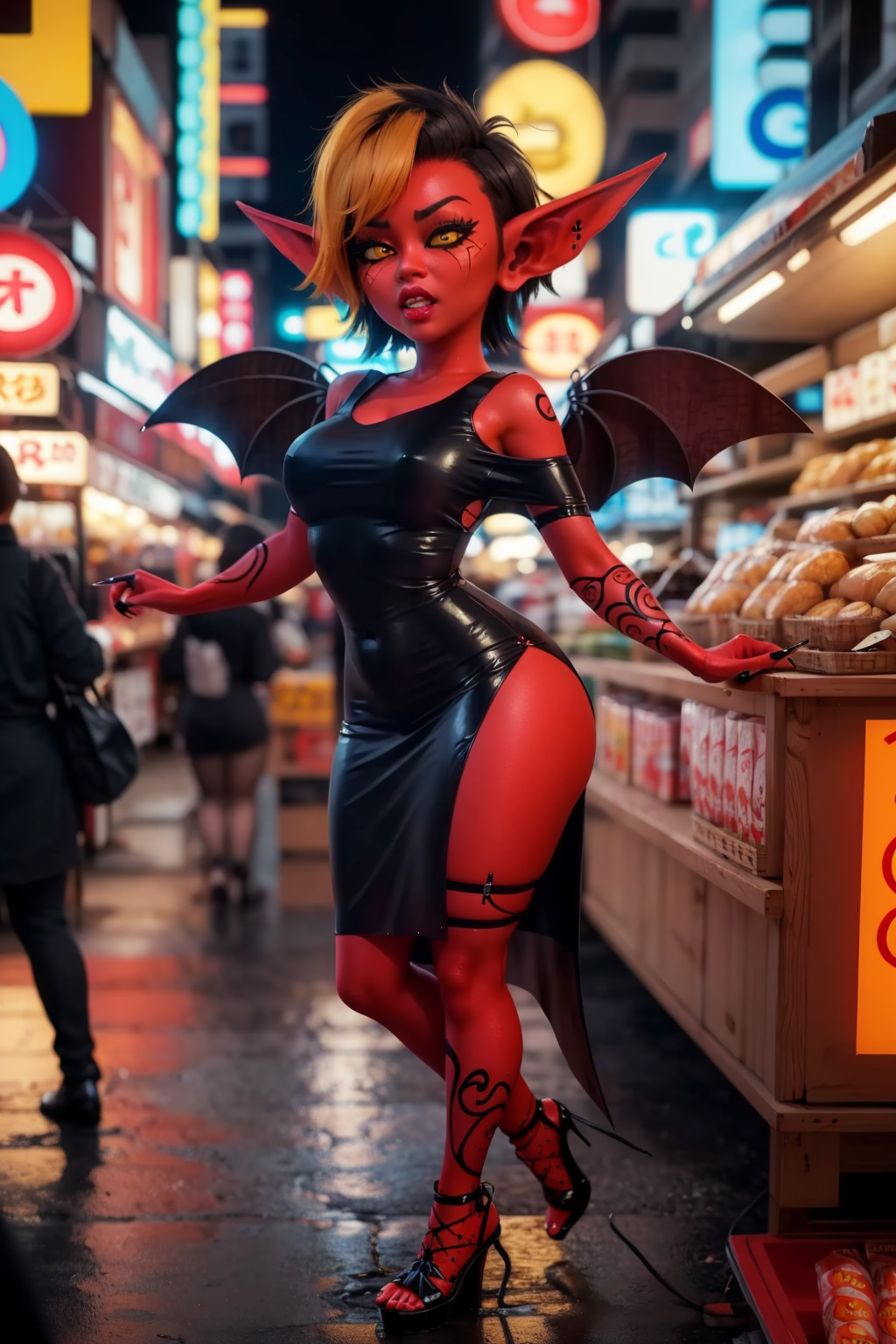 使用时,请在提示词中指定小鬼颜色和耳朵样式,例如:“绿色小鬼,宽耳”。添加“short stack”可获得更典型的小鬼外观。请参考图库中的示例提示词。如果难以获得准确的小鬼颜色,可在提示词中加入皮肤颜色。Lyco 权重使用 1-1.2,提示词标签权重使用 1-1.3 效果较好。在 img2img 或放大处理时,可能需要降低 Lyco 权重(我使用了 0.7)以获得更清晰的结果。