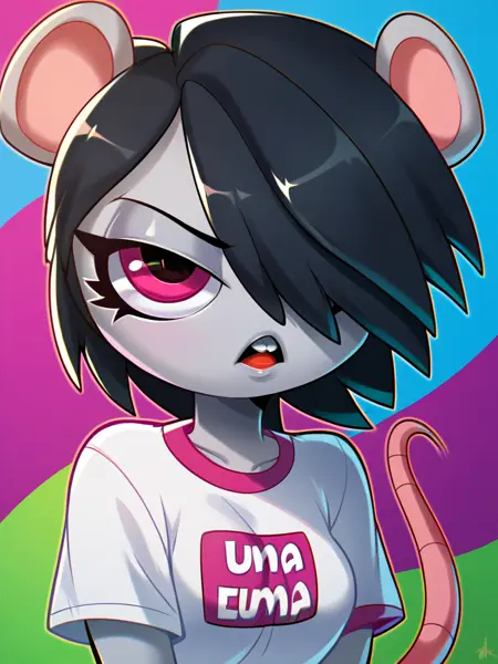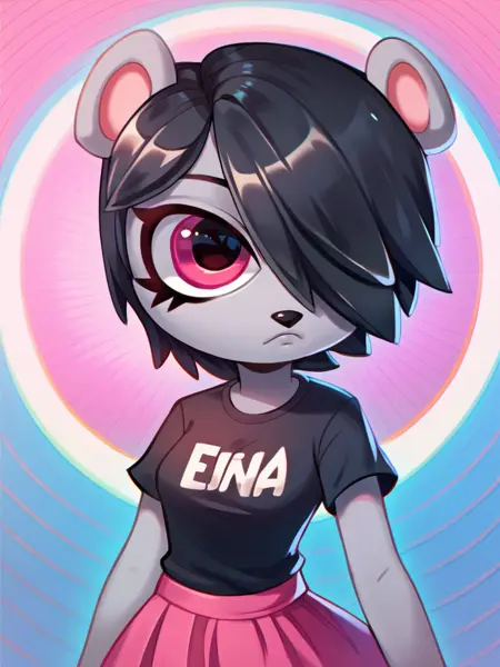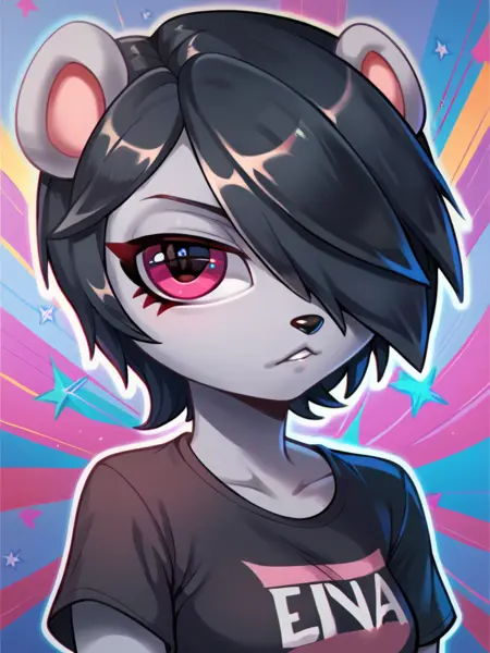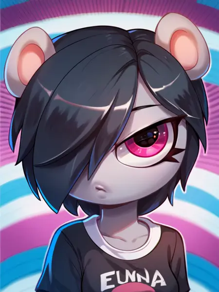 Reinforcement Tag: grey fur, black hair, hair over one eye, swept bangs