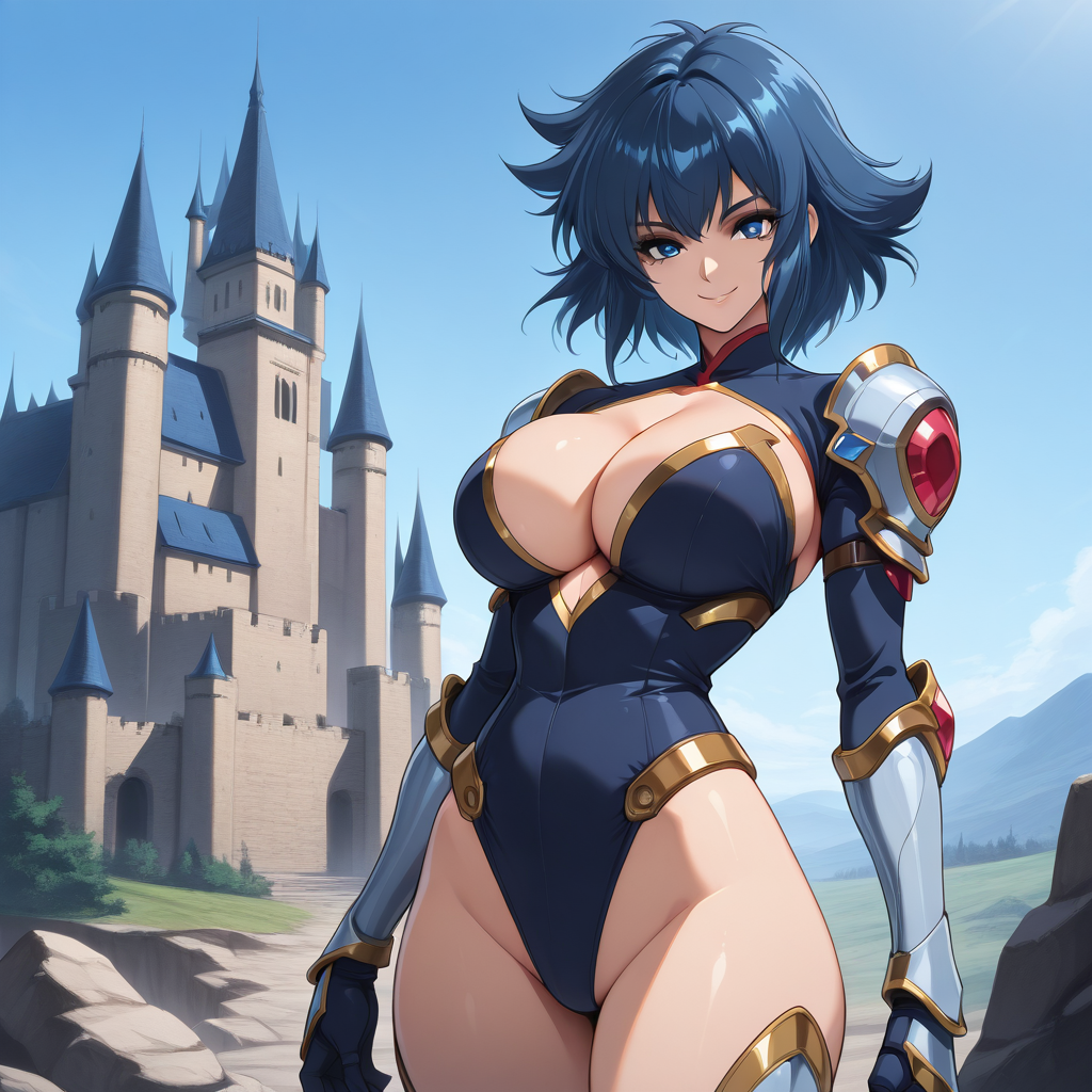 kai_, 1girl, blue hair, blue eyes, armor, brown hair,_
