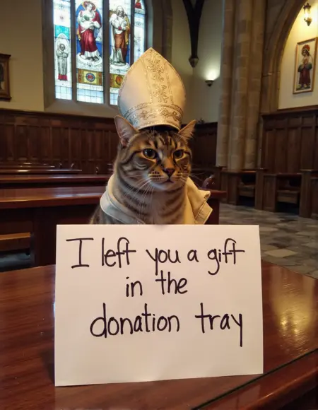 이것은 더 나은 사진처럼 생긴 평범한 고양이(및 아마도 다른 동물들)를 생성하는 데 도움이 됩니다. 또한 이는 앞에 표지를 일관되게 배치해 주며, 이를 통해 Flux의 탁월한 텍스트 생성 기능을 활용할 수 있습니다.