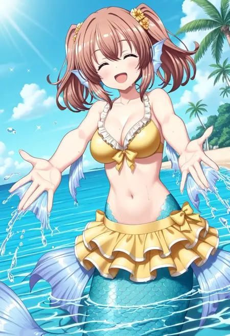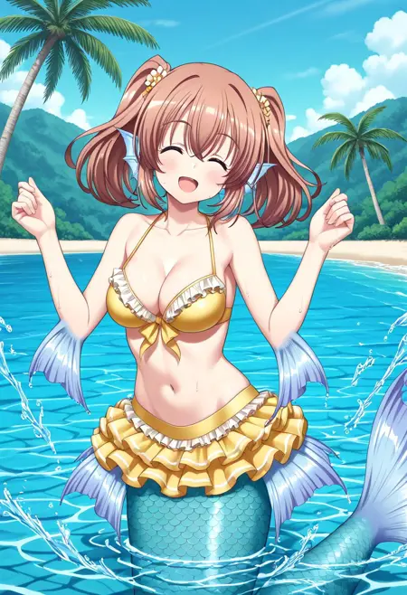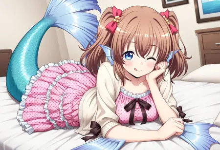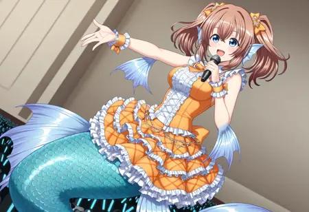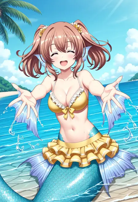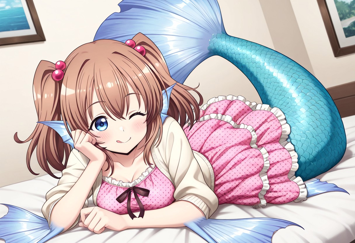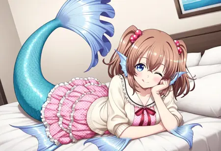 핵심 태그: mmRui, 갈색 머리, 파란 눈, 쌍꼬리, 중간 길이 머리, 중간 흉부, 몬스터 소녀, 해녀, 해녀 꼬리, 파란 꼬리, 머리 지느러미, 팔꿈치 지느러미, 엉덩이 지느러미, 막발가락
