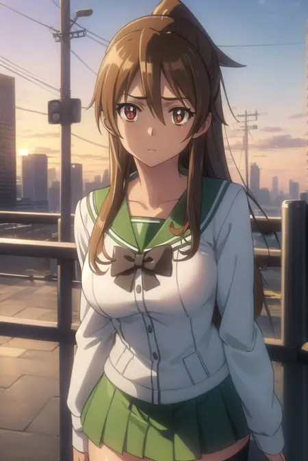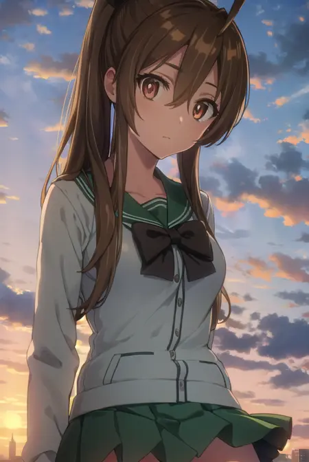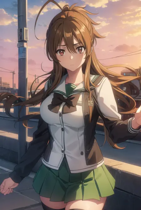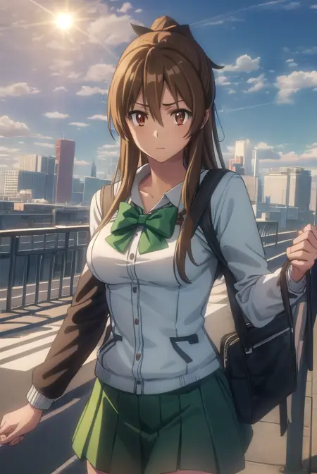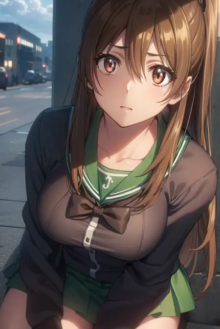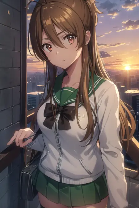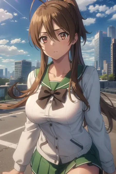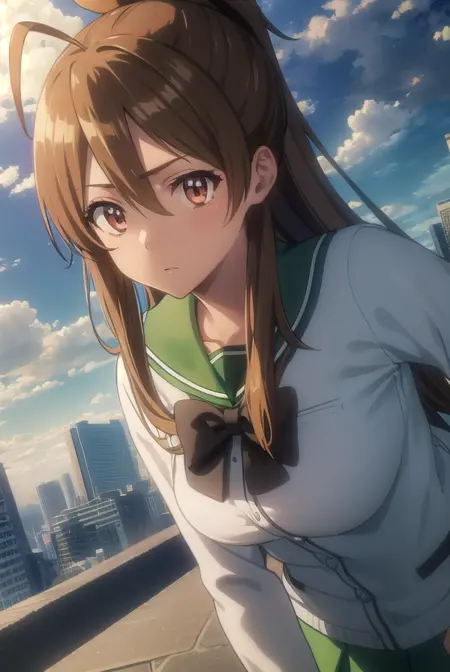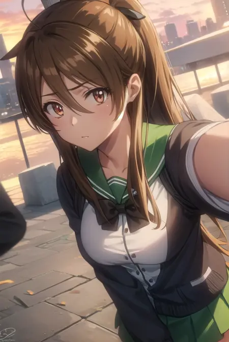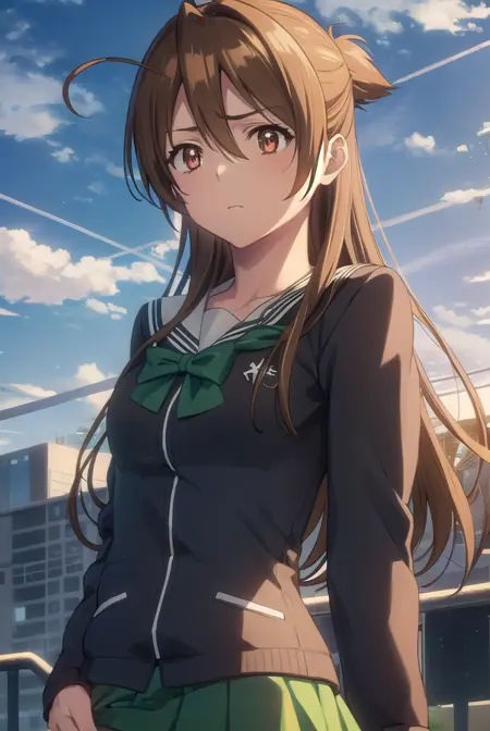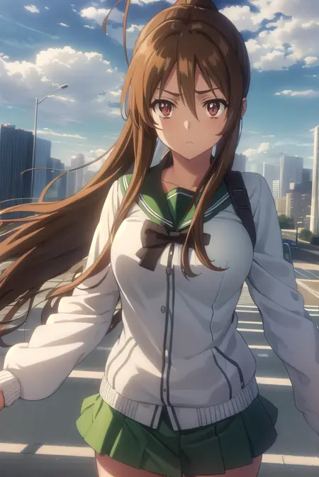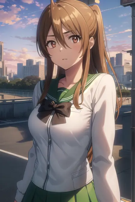 rei miyamoto, 长发, 棕发, (棕色眼睛:1.5), 天线发, 马尾,