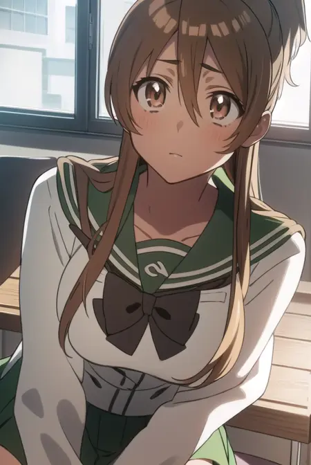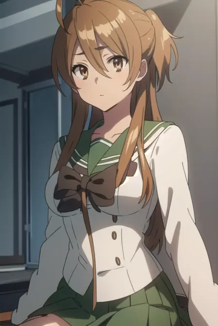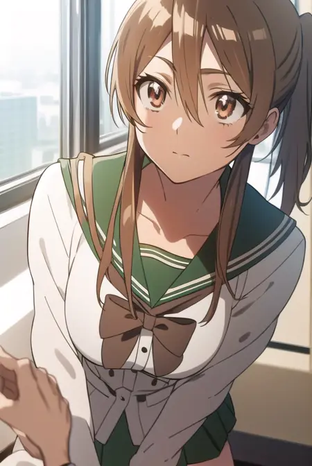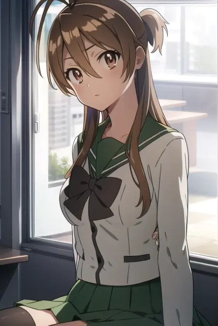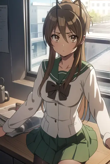 rei miyamoto, 长发, 棕发, (棕色眼睛:1.5), 天线发, 马尾,