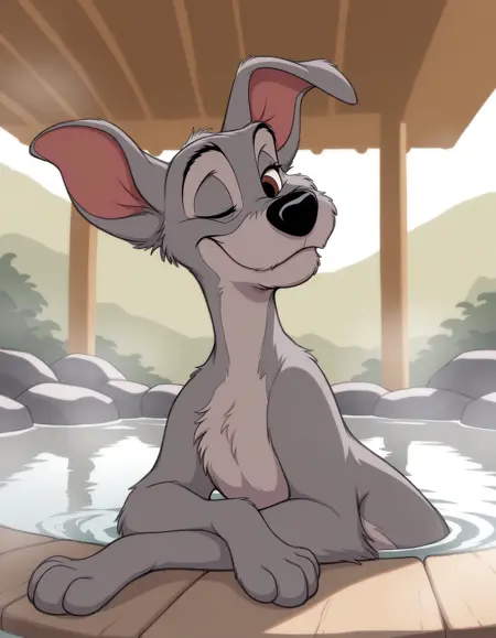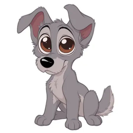 프롬프트: Tramp, gray fur, disney, male, brown eyes, black nose.