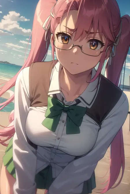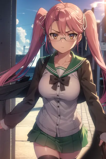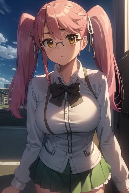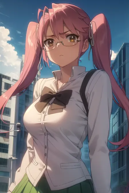 saya takagi,长发,丝带,双马尾,(棕色眼睛:1.5),发带,粉发,眼镜,