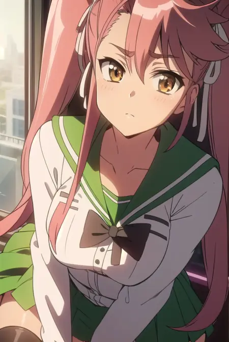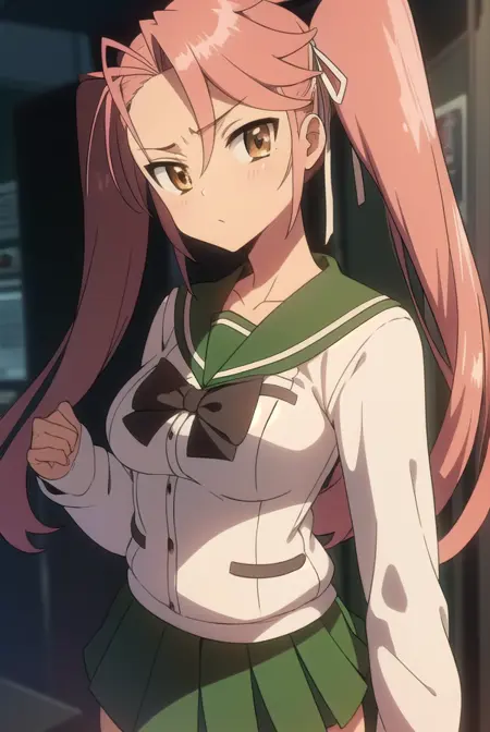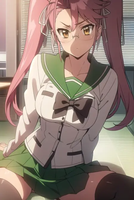 saya takagi,长发,丝带,双马尾,(棕色眼睛:1.5),发带,粉发,眼镜,