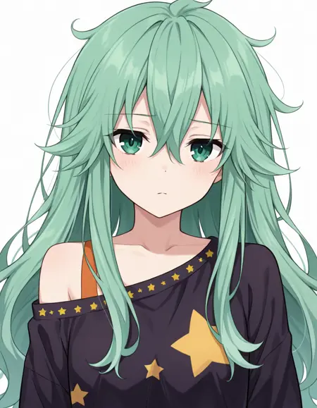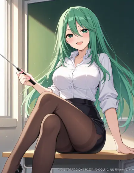 NatsumiBig, green eyes, long hair, green hair, large breast