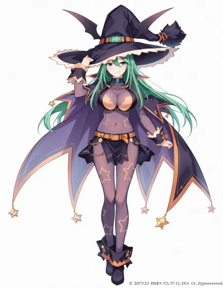 Witchbig, wtc2_bodysuit, wtc2_bra, wtc2_miniskirt, wtc2_chain, wtc2_choker, wtc_bra, star print, wtc2_witch_hat, wtc2_cape, wtc2_belt, wtc_high_heels_boots