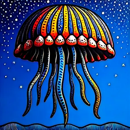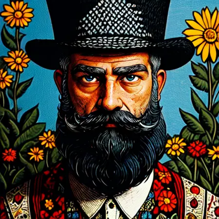 The style evokes a sense of myth and folklore while integrating a modern, psychedelic twist.