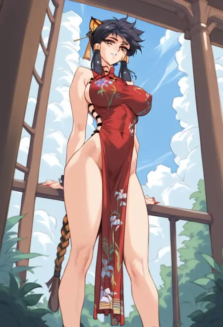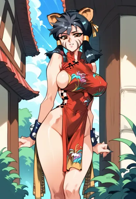 触发词:homei_s、大乳房、动物耳朵、黑发、中国服饰、旗袍、尾巴