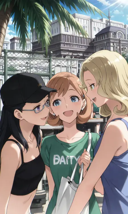 Combine tags of characters you need and replace "1girl, solo" with 2girls or 3girls. (You might need to change eye color strength a bit, sometimes they mix)