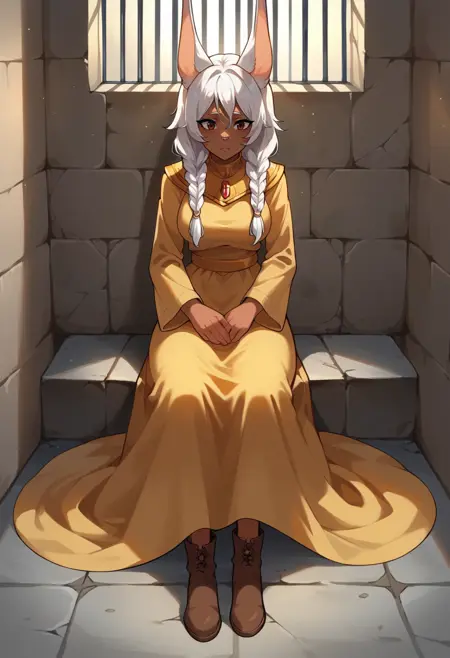 riana, 深色皮肤女性, 中等胸部, 棕色眼睛, 白色头发, 双马尾辫, 猫鼻, 动物耳朵, 长耳朵
