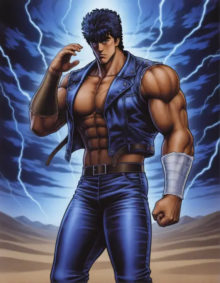 ヘアスタイルや顔がうまく出ない場合は、ネガティブプロンプトに「kenshiro」と追加すると解決する可能性があります。