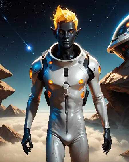 此LoRA用于生成星之精灵——皮肤如太空般漆黑,头发似太阳爆发般闪耀。其他多个部位(舌头、乳头、指甲、生殖器)为金色,与深色皮肤形成鲜明对比。