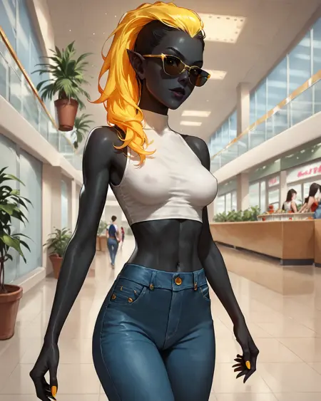 辅助关键词:黑曜石色皮肤、发光的头发、金色指甲油