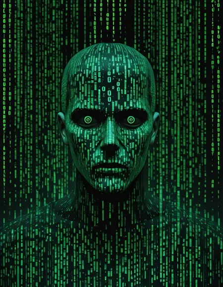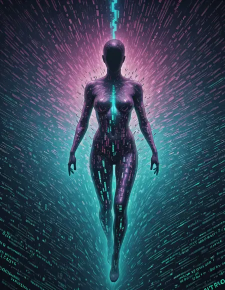 mmatrix-style, silhouette, code, text focus, glitch, digital dissolve, 1boy, 1girl,