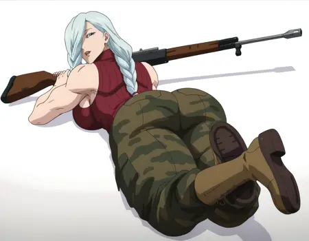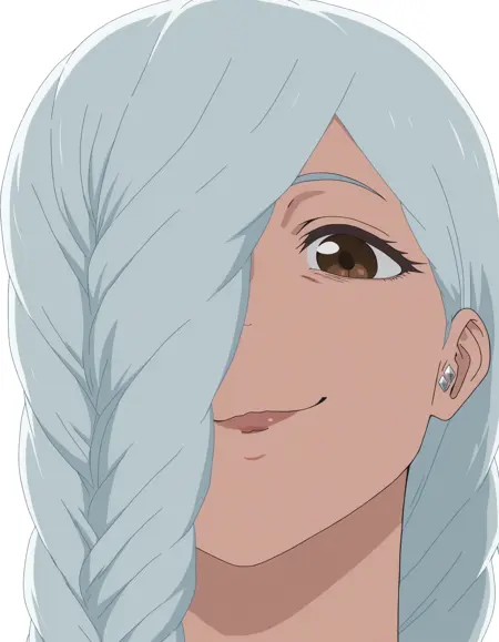 m31m31, 1girl, brown eye, mature female, hair over one eye, braided bangs, twin braids, long hair,