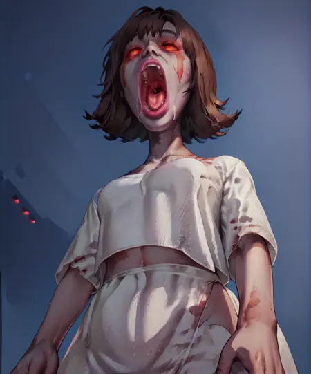 顔や服に血液が付いている可能性があります - 血液を追加すると効果的ですが、Negで減らすこともできます