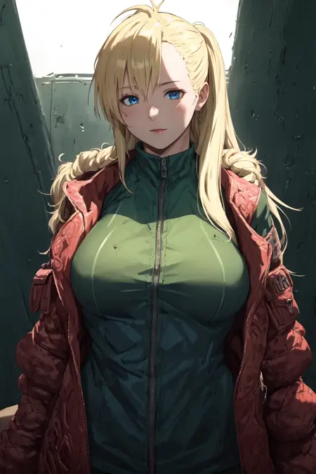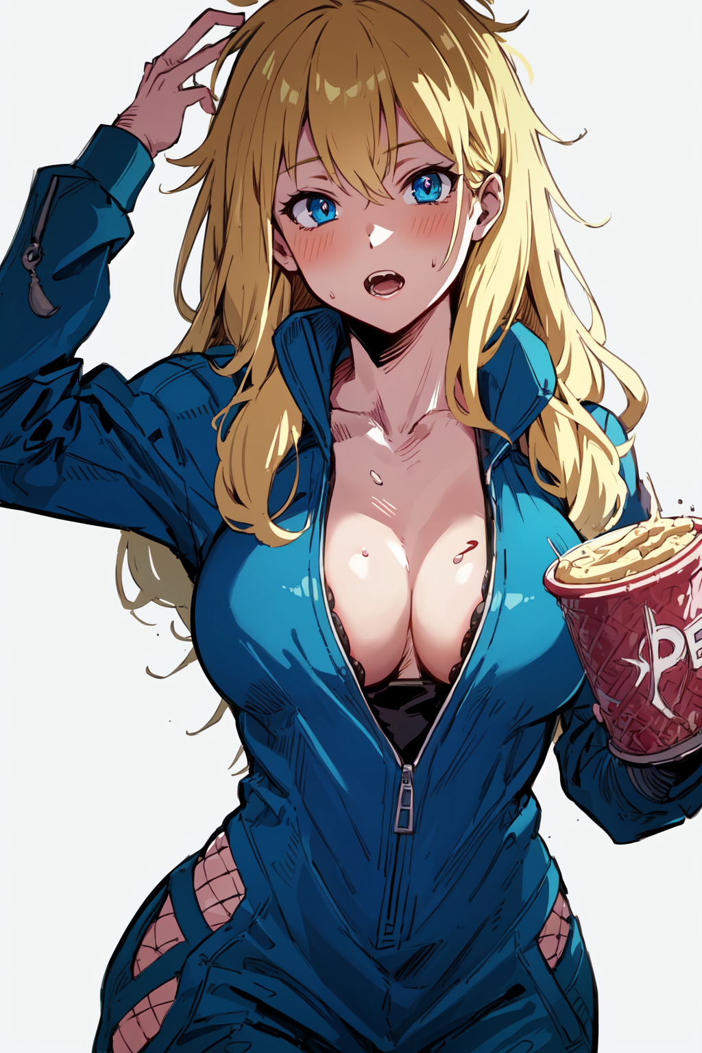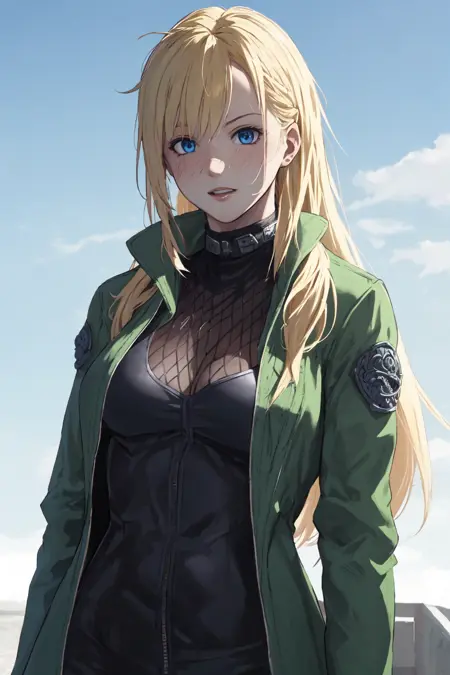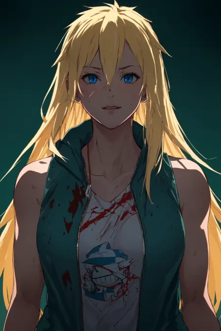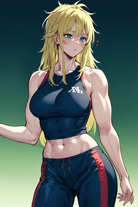 より良い外観を実現するには、「金髪、長い髪、青い目、乱れた髪、(筋肉質:0.8)」 を追加してください。