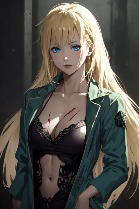 为了获得更好的效果,请添加“金色头发,长发,蓝眼睛,乱发,(肌肉:0.8),”