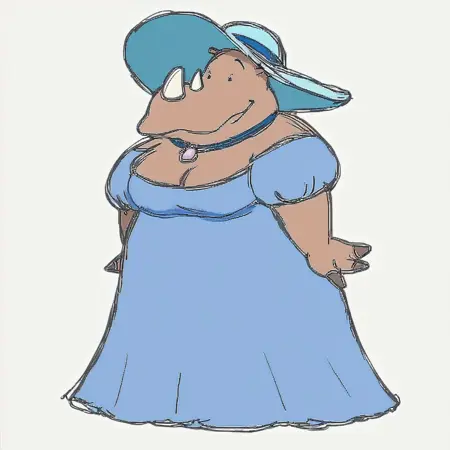 巴巴尔系列(书籍和动画)中的反派拉塔克司国王的妻子,是一只犀牛。