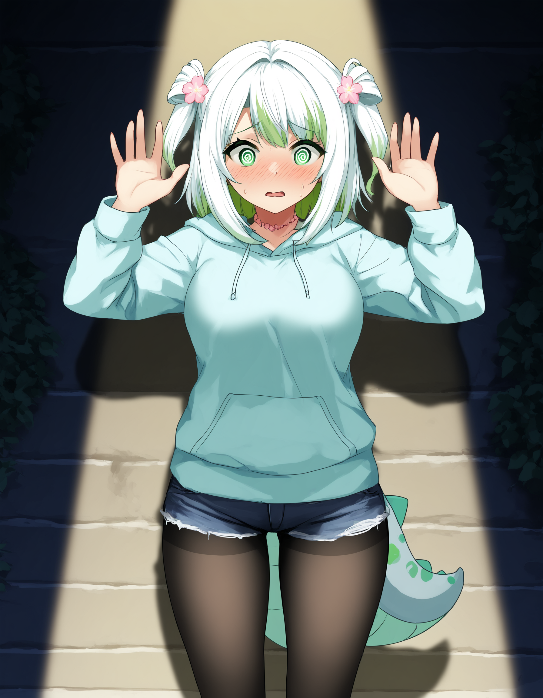 양손을 위로 들며 항복하는 자세를 취하는 것처럼 보이게 합니다.