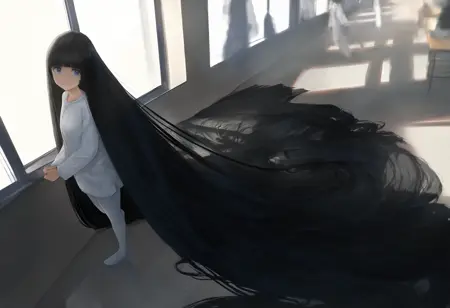 铺满地面的超长发-long hair spread floor-pony, noobai, animagine