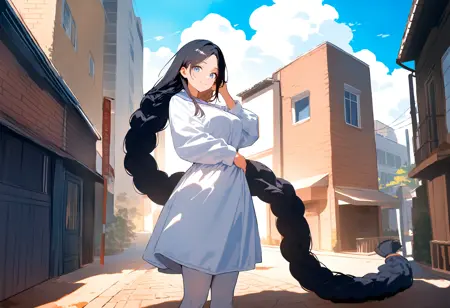 this lora can generate long hair that spread to the floor, hair bun that larger than head, braid that is as large as head.