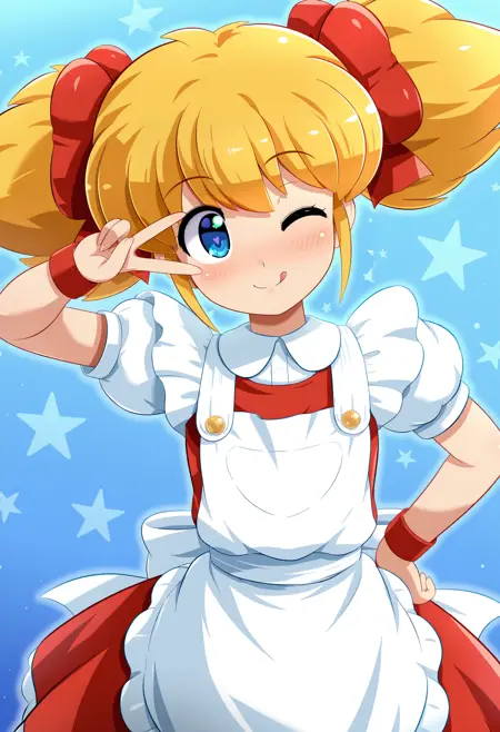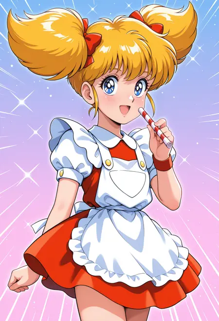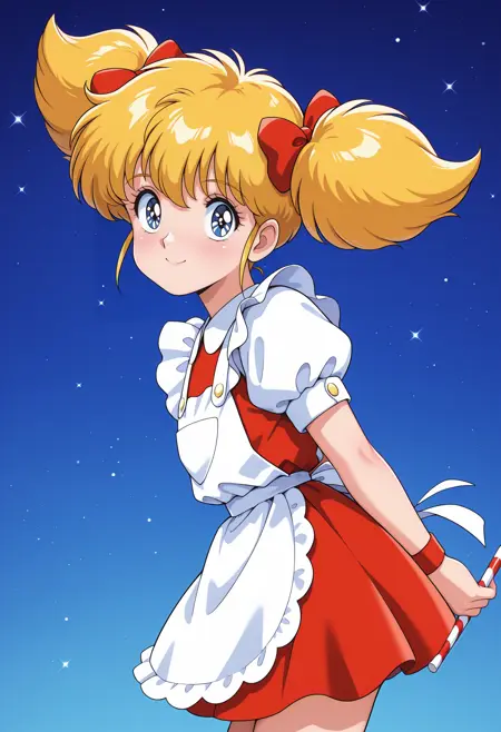 我尽力还原了她原有的艺术风格,以及她向上翘起的双马尾,以便你可轻松地以复古风格或非复古风格来提示她。