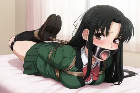 일반 프롬프트: hogtie, restrained, bondage, bound, shibari,