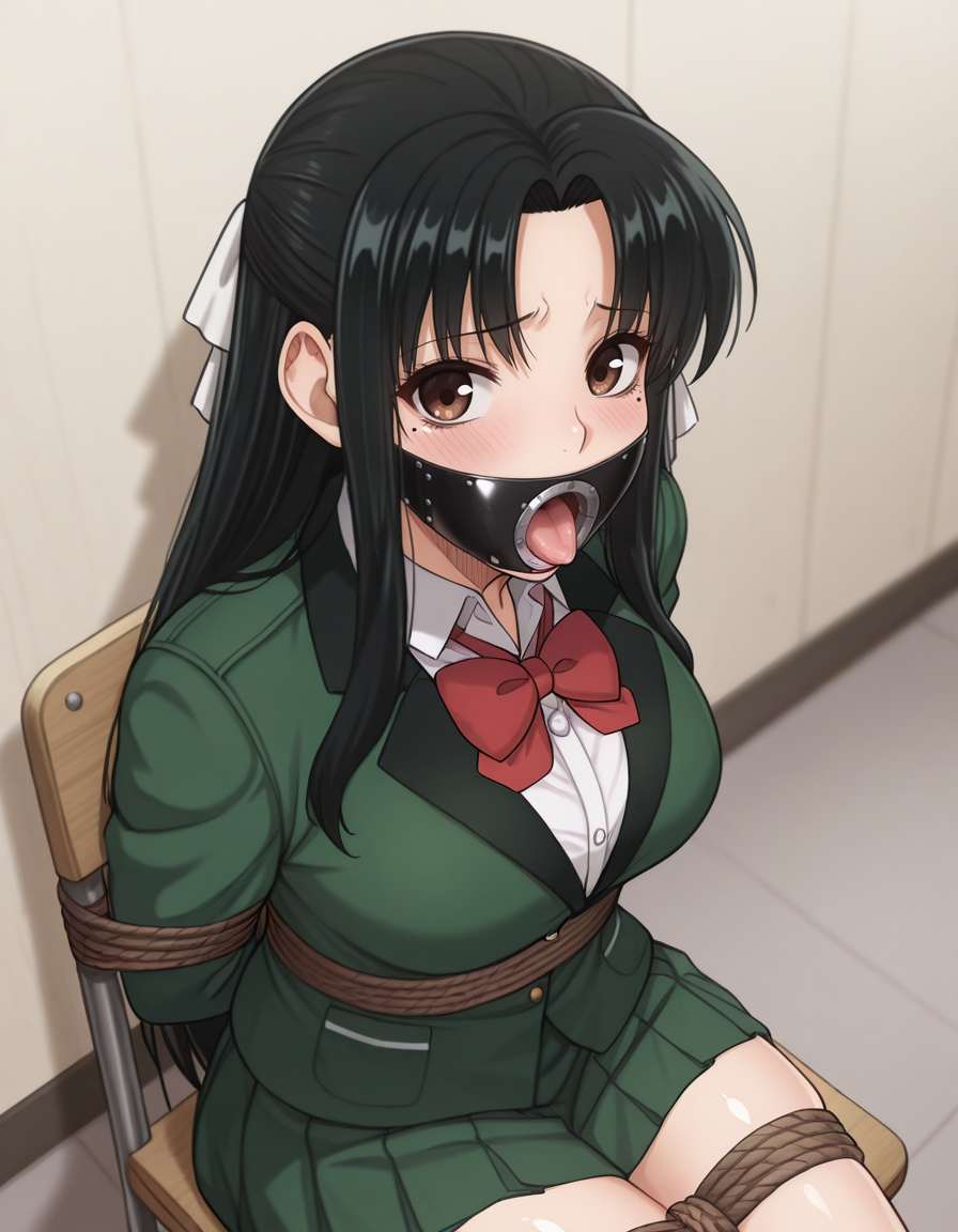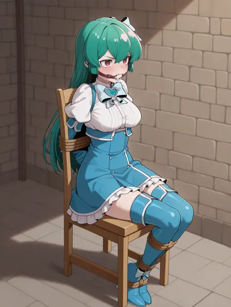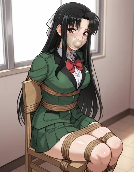 一般: chairtied、椅子に縛られている、座っている、縛られている、束縛、BDSM、ロープ、腕が背中側に縛られている、脚が縛られている