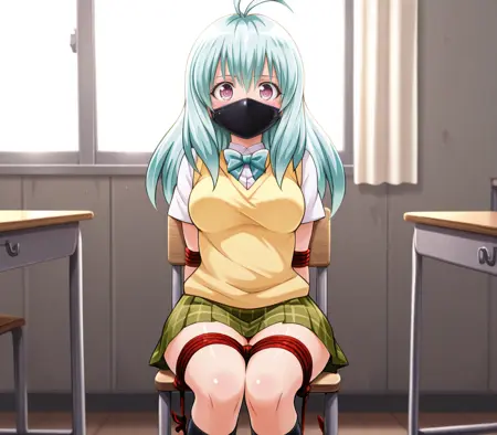 chairtied, tied to chair, sitting, bound, bondage, bdsm, rope, arms behind back, bound legs,