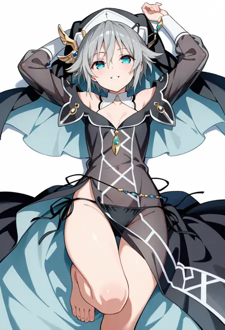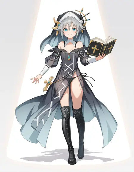 NiaSister, sstr_dress, sstr_detached collar, sstr_habit, sstr_thigh_boots, sstr_book, see-through dress,sstr_side-tie_panties, sstr_cross_ornament,