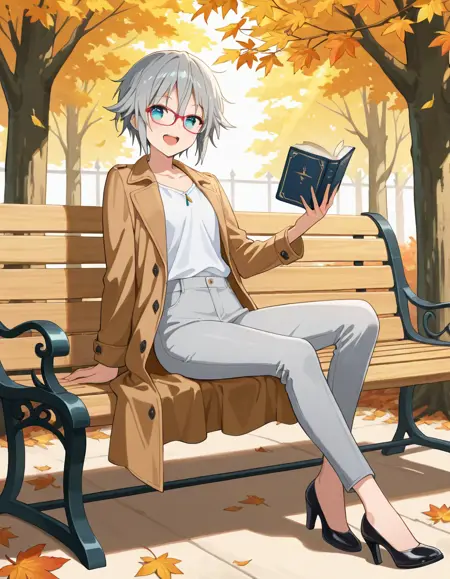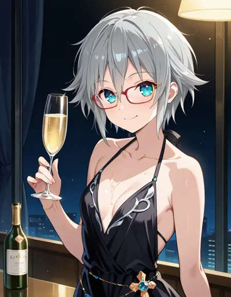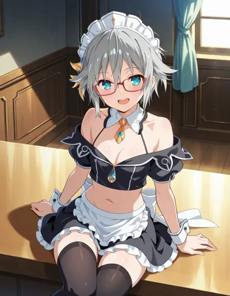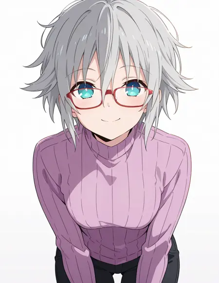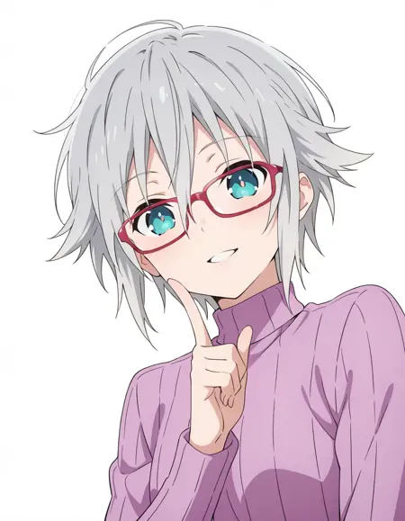 Nia Honjou, grey hair, short hair, blue eyes, Nia_glasses