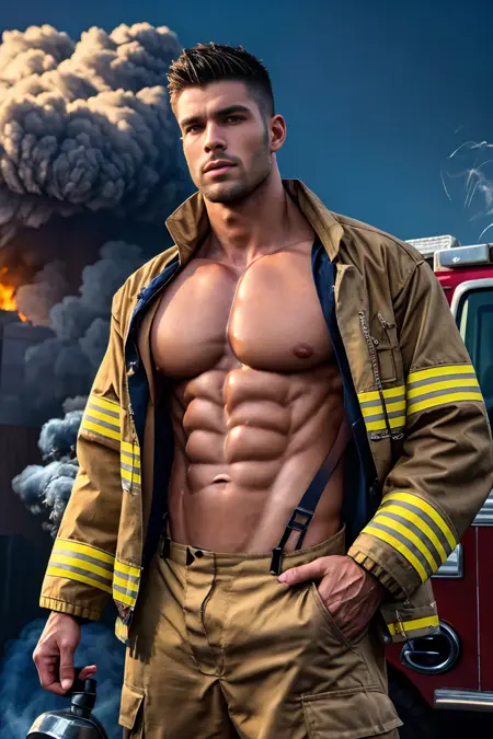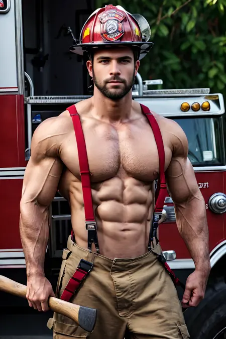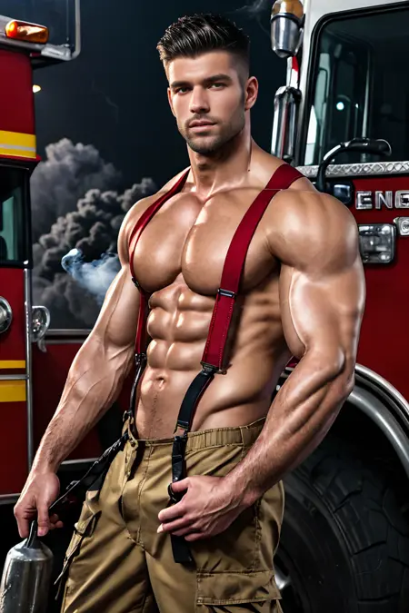 Makes shirtless firefighter attire for your character. Trained on various photography photos especially those sexy firefighter calendars photoshoots. I also kinda want to make this like a 'sexy male job' series, including the mechanic one, so yeah. If you guys are interested, stick around for more..