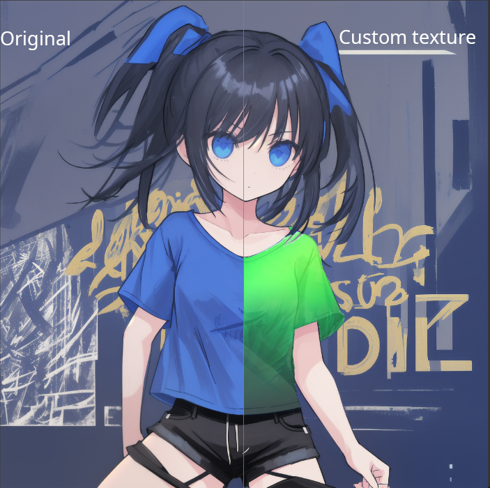 - 두 번째 LayerColor: RGB를 Load Image + ImageBlend로 교체하면, 원하는 어떤 이미지라도 새로운 텍스처로 사용할 수 있습니다.