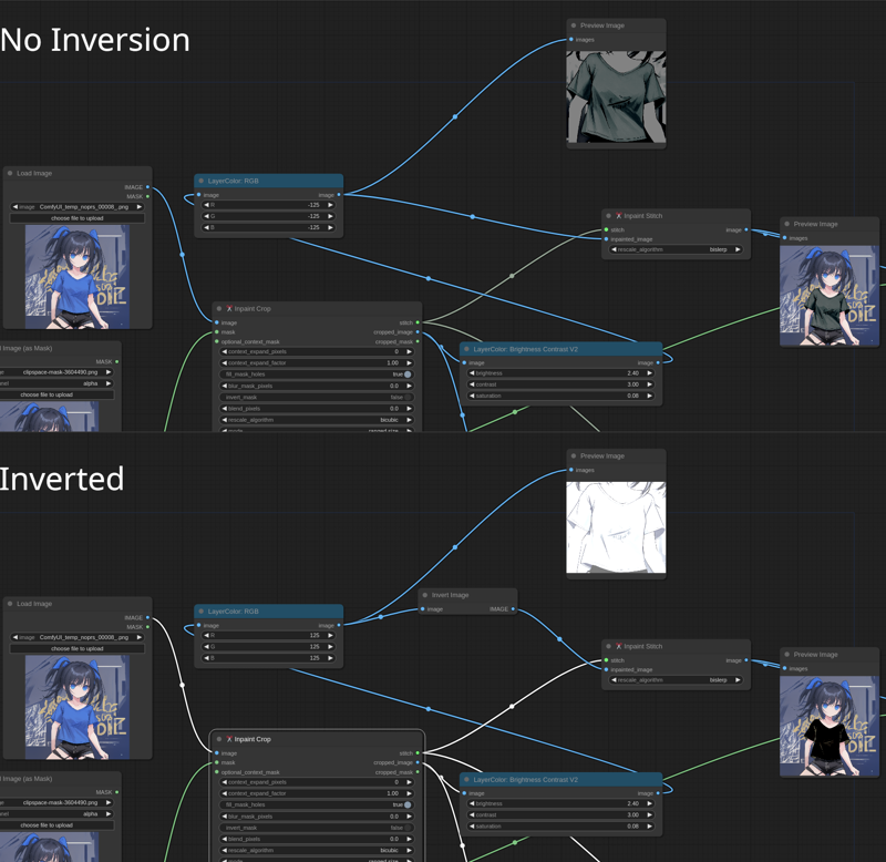 - 때로는 첫 번째 LayerColor: RGB 이후에 InvertMask를 적용하는 것이 좋을 수 있습니다.