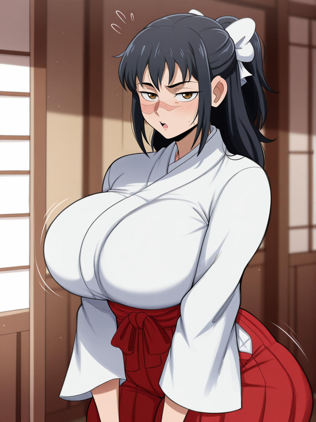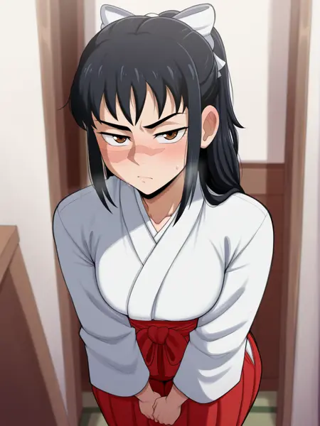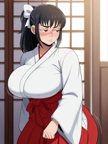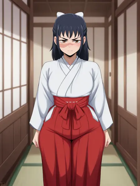 | 학습된 단어 | iori utahime, 1girl, solo, long hair, black hair, ponytail, scar, scar on face, scar on nose, brown eyes,복사됨! skirt, hakama, hakama skirt, red hakama, red skirt, long skirt, japanese clothes, miko, bow, hair bow, brown boots, looking at viewer,복사됨! |