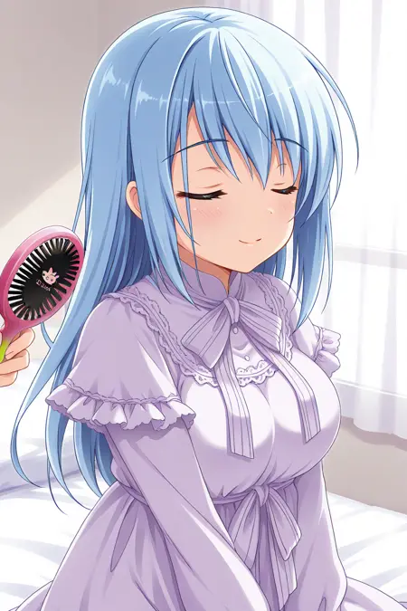 kinomoto hana,pink eyes,blue hair,light blue hair,hair down,very long hair,large breasts,