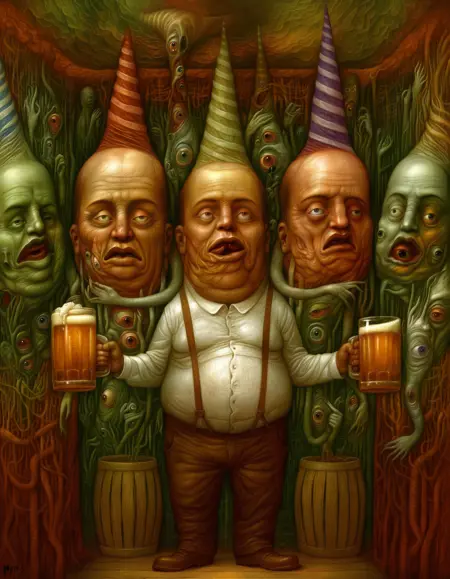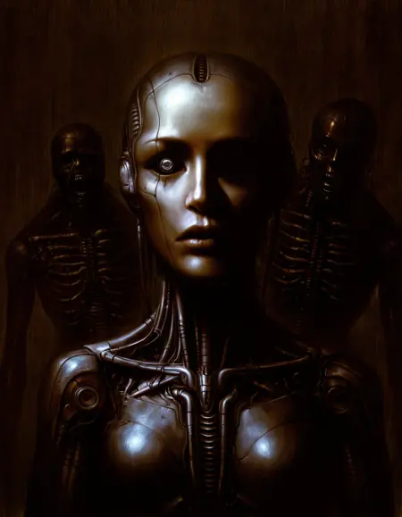 絵画的スタイル。Chris MarsとH.R. Gigerのスタイル、および類似した収集された芸術作品を模倣。色を変更。ねじれた顔を描く。超現実的なボディホラー。