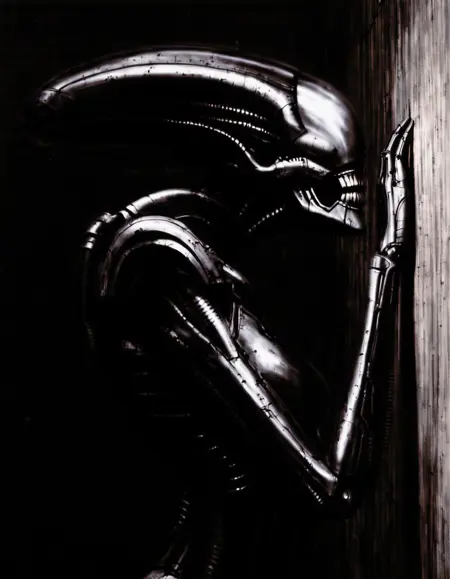 使用に適したタグ:painterly、artist: chris mars、biomechanical art style、science fiction、monster、surreal、surrealism