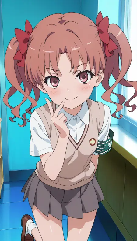 これは日本アニメ『科学超電磁砲』に登場する女性キャラクター、白井黒子です。