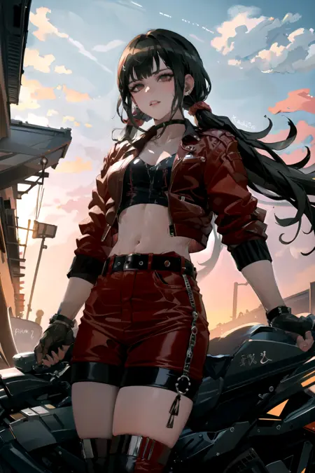 8:Hasakuに私がリリース済みの「バイク乗りLoRA」を組み合わせ。