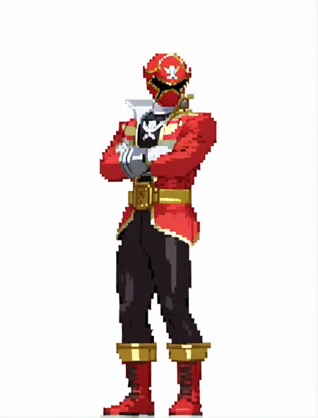 레드 레인지어: gokaired, robot, solo, gokaired helmet, black gokai bodysuit, gokaired jacket, black pants, gold belt, white gloves, red boots